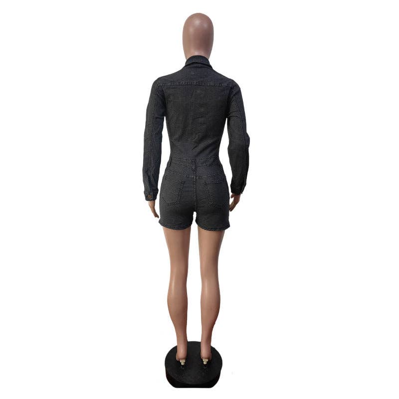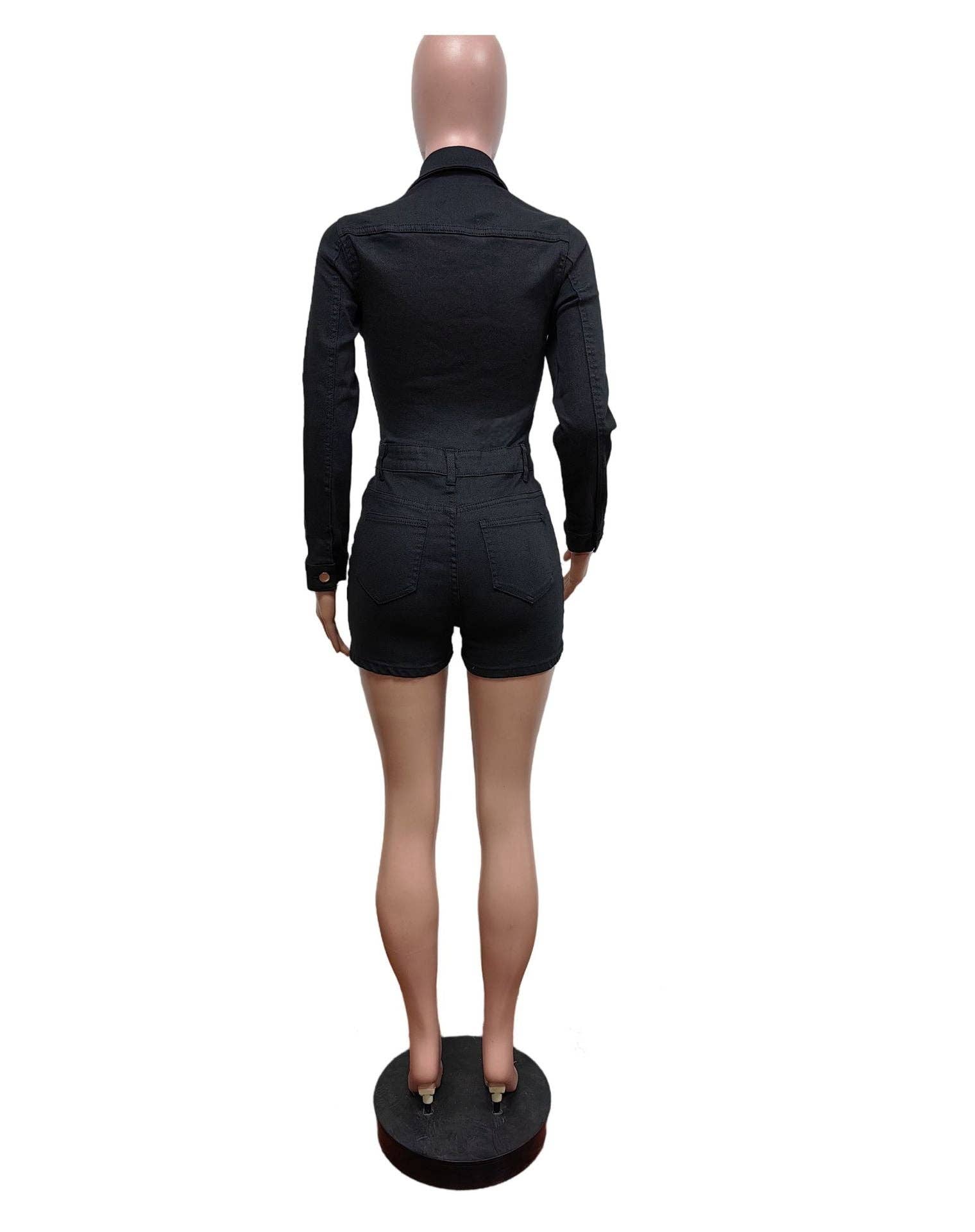 MB FASHION Long Sleeve Button-Up Denim Romper 8622LY